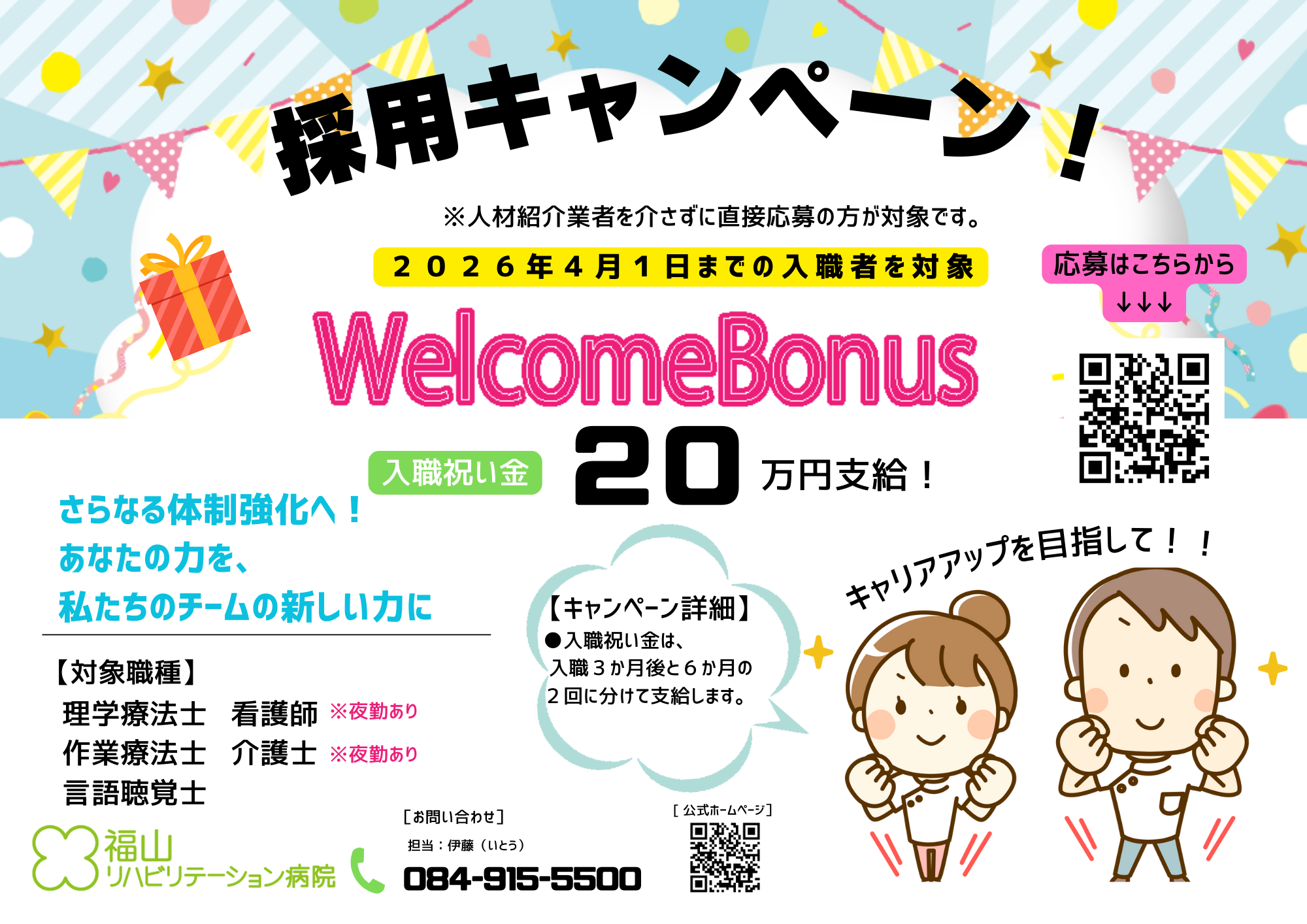 福山リハビリテーション病院では、入職者を応援する為<採用キャンペーン>をスタートいたしました。