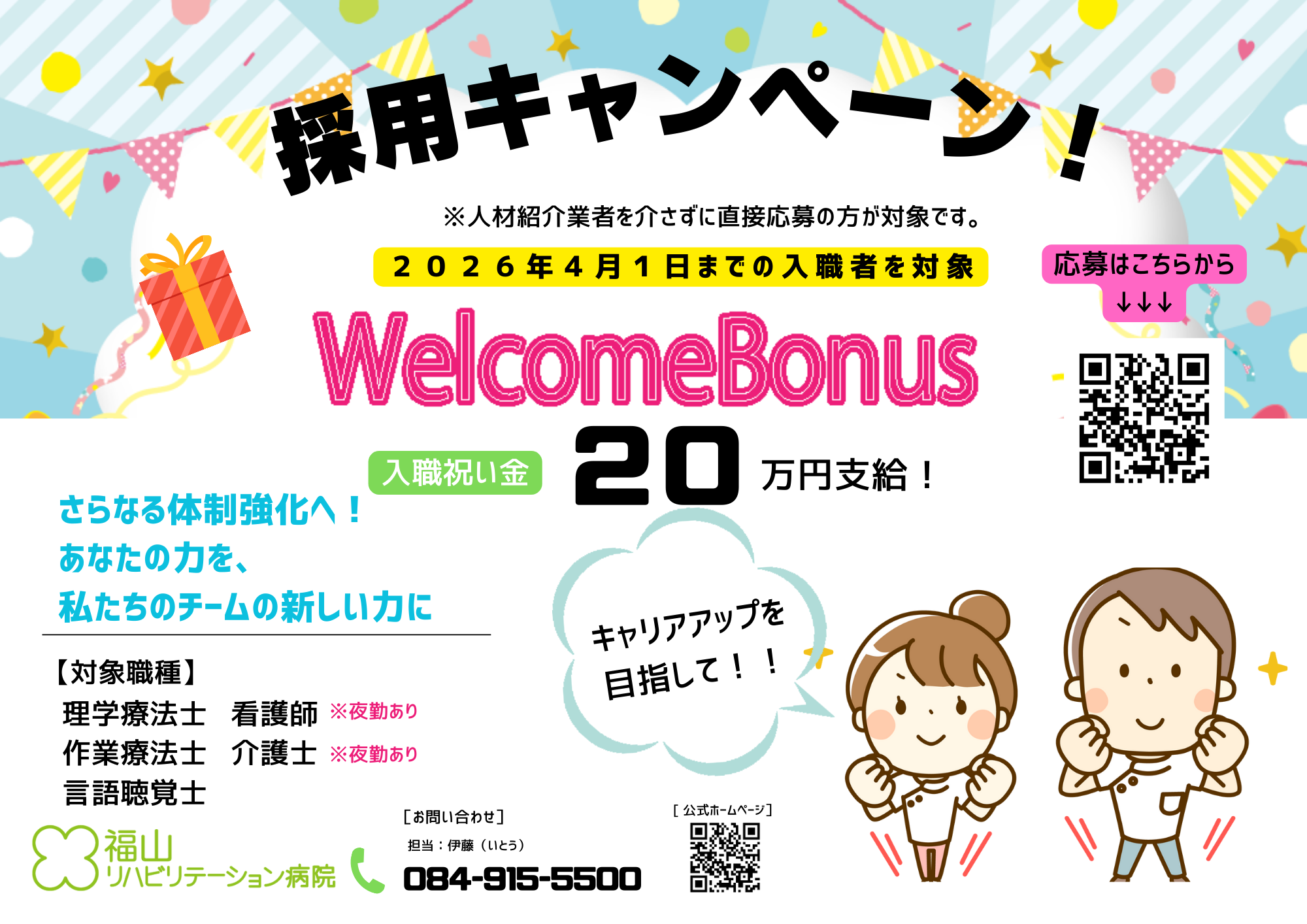 福山リハビリテーション病院では、入職者を応援する為<採用キャンペーン>をスタートいたしました。